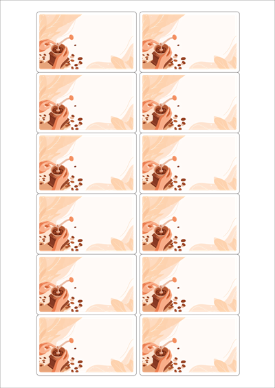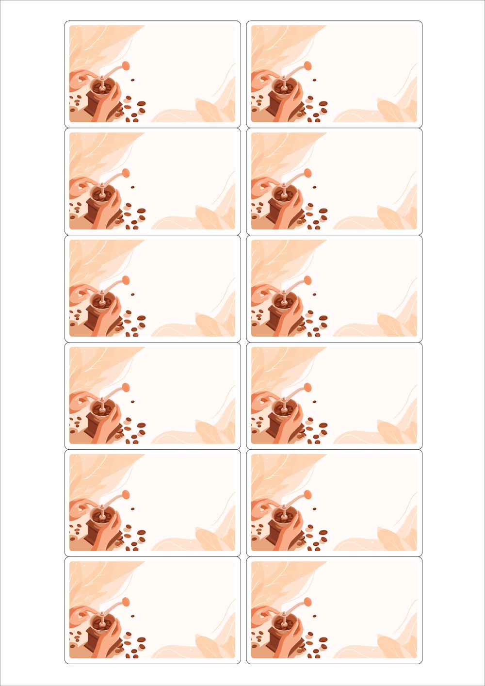 디자인된 A4 라벨지 출력용 라벨스티커, 규격코드: 526F, 디자인코드: DA1411(향긋한 커피타임), 76.2 x 46.4 (mm)