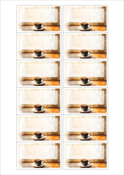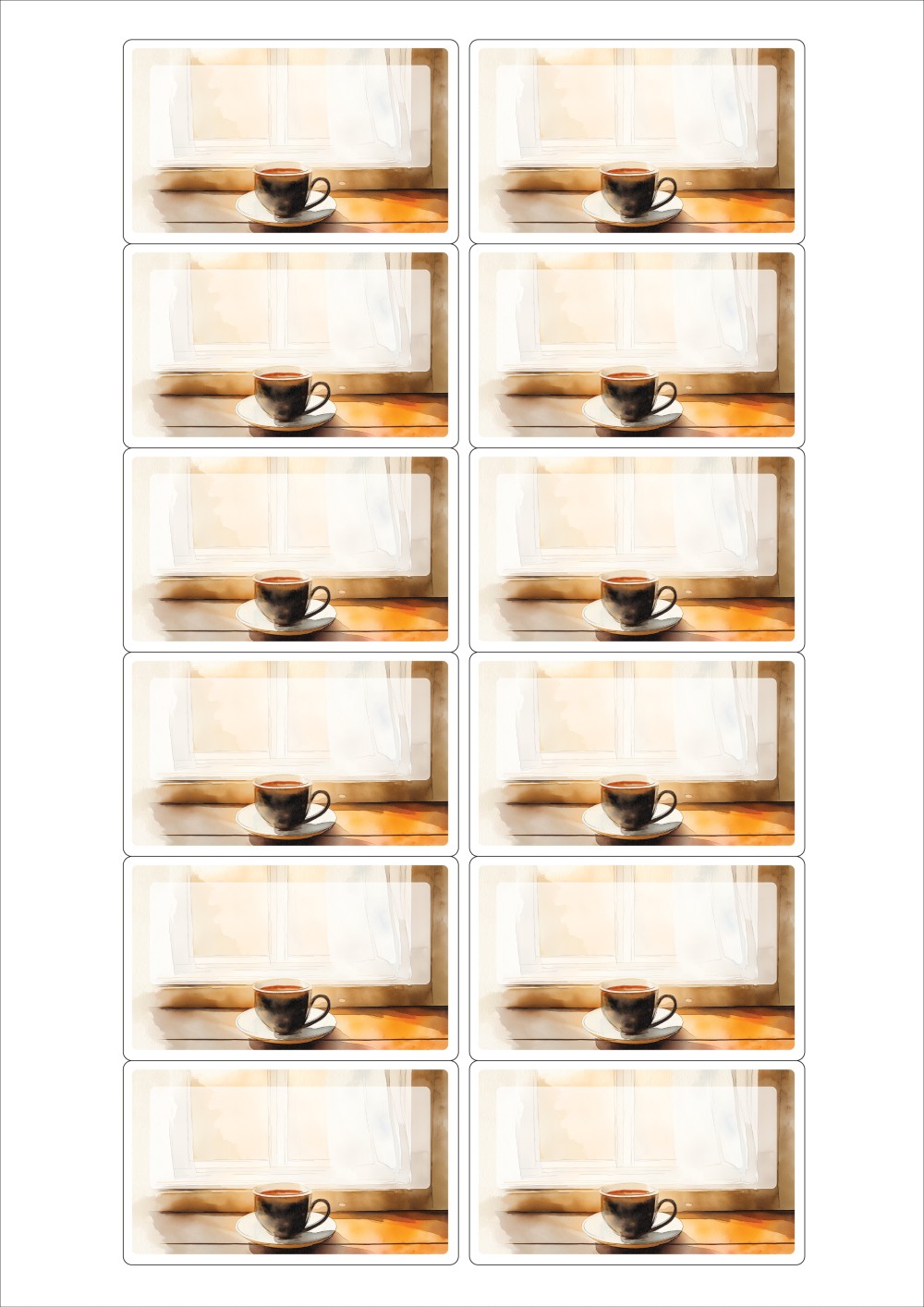 디자인된 A4 라벨지 출력용 라벨스티커, 규격코드: 526F, 디자인코드: DA1424(따뜻한 차 한잔 하세요), 76.2 x 46.4 (mm)