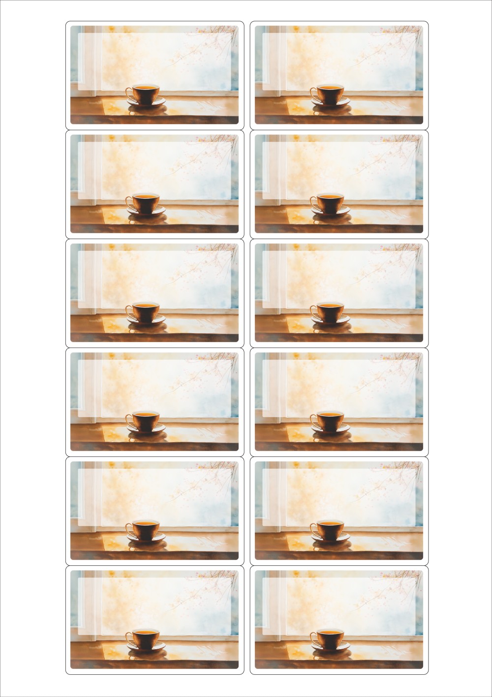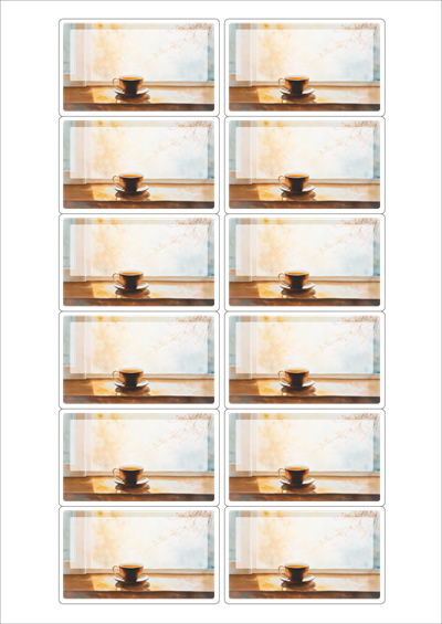디자인된 A4 라벨지 출력용 라벨스티커, 규격코드: 526F, 디자인코드: DA1425(가을날의 카페 창가에서), 76.2 x 46.4 (mm)