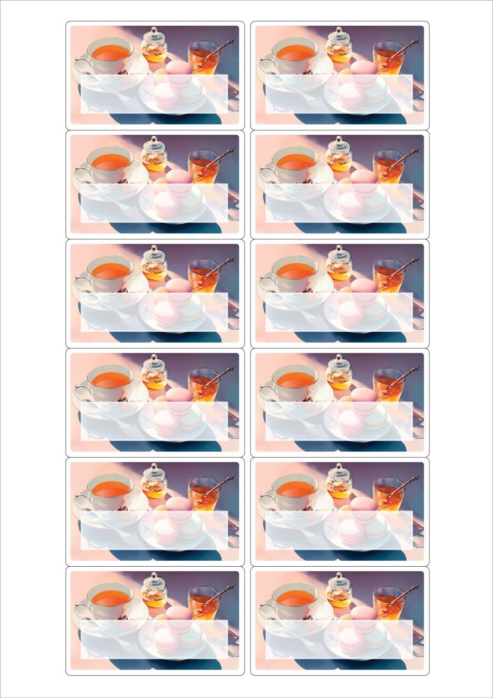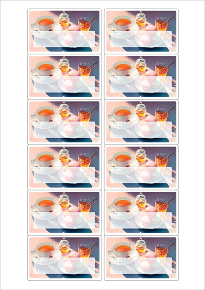 디자인된 A4 라벨지 출력용 라벨스티커, 규격코드: 526F, 디자인코드: DA1430(브런치 타임), 76.2 x 46.4 (mm)