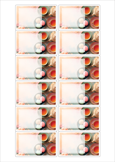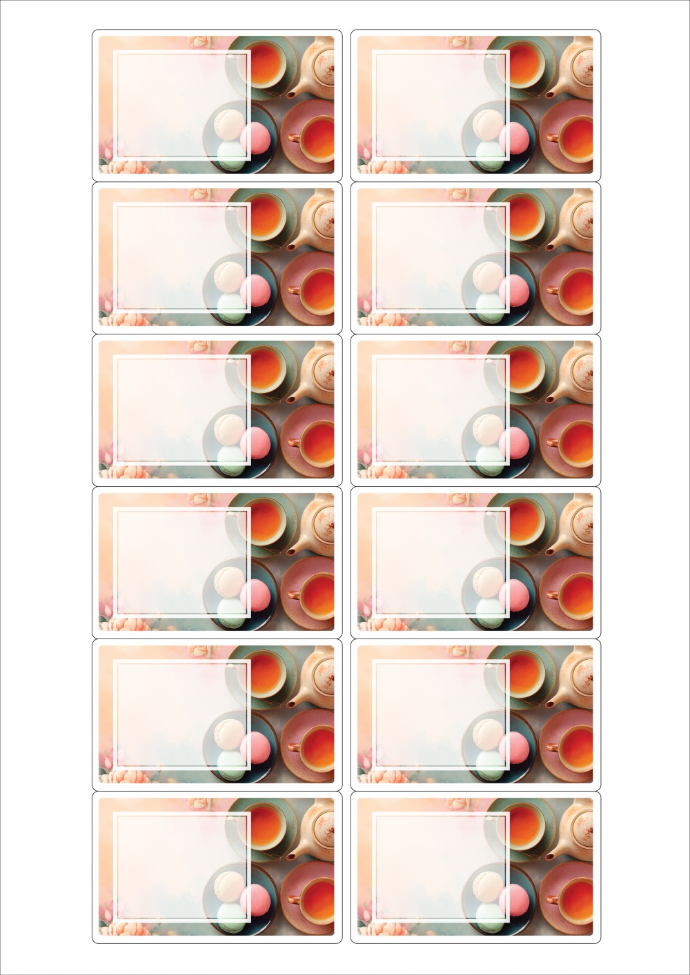디자인된 A4 라벨지 출력용 라벨스티커, 규격코드: 526F, 디자인코드: DA1431(향긋한 아침에), 76.2 x 46.4 (mm)