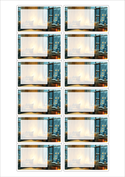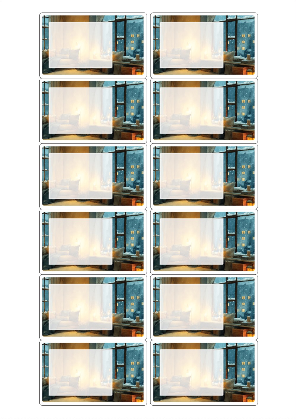 디자인된 A4 라벨지 출력용 라벨스티커, 규격코드: 526F, 디자인코드: DA1461(아늑한 실내, 겨울의 창가에서), 76.2 x 46.4 (mm)