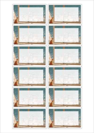 디자인된 A4 라벨지 출력용 라벨스티커, 규격코드: 526F, 디자인코드: DA1493(따뜻한 방안이 좋다냥~), 76.2 x 46.4 (mm)