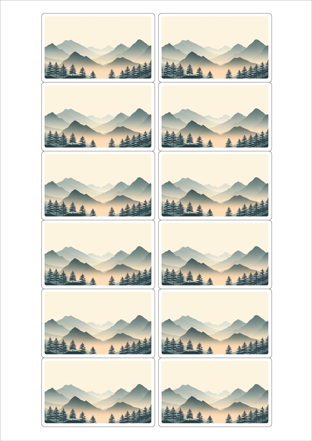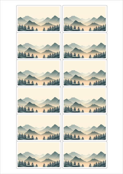 디자인된 A4 라벨지 출력용 라벨스티커, 규격코드: 526F, 디자인코드: DA1572(고요한 아침의 숲), 76.2 x 46.4 (mm)