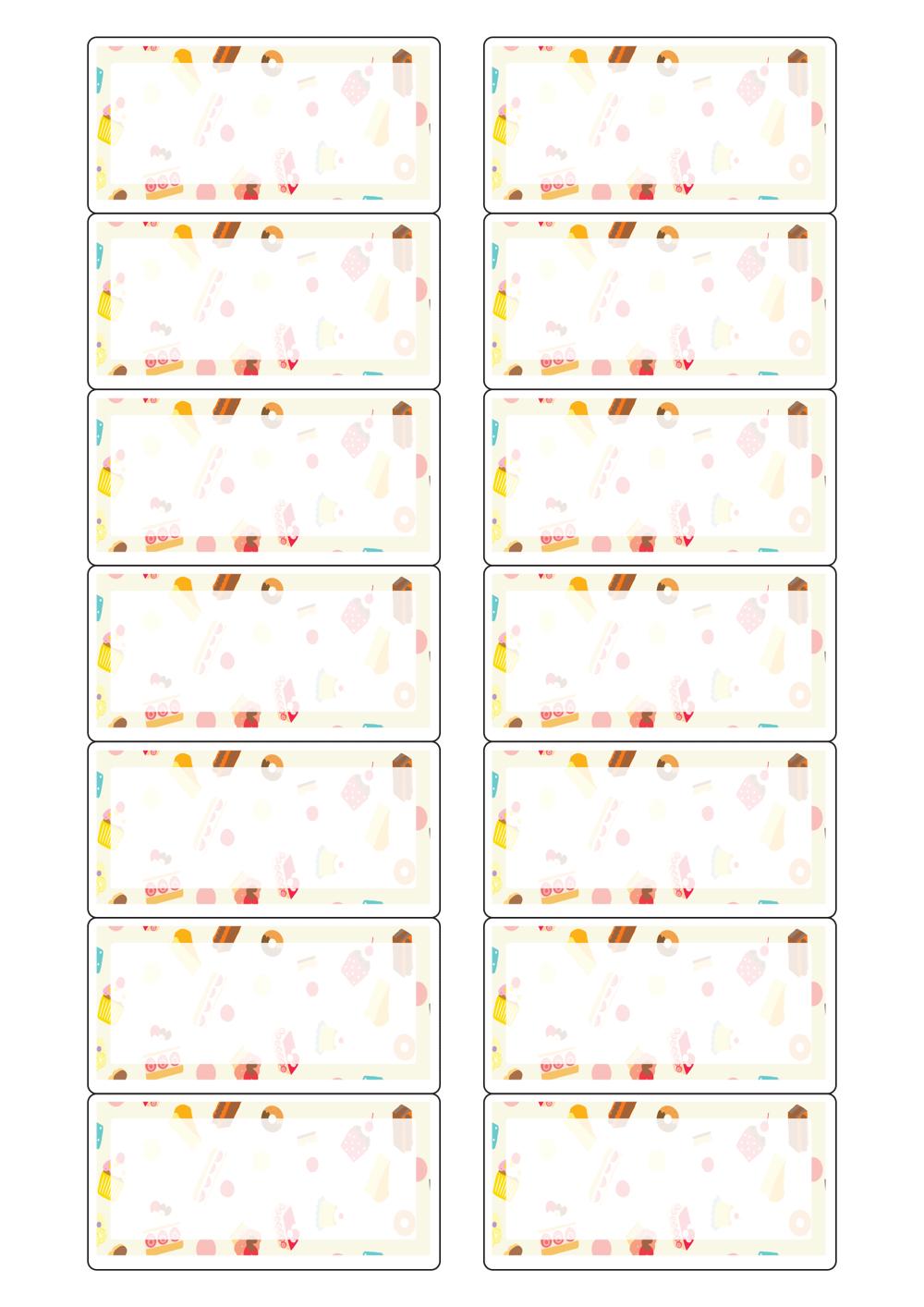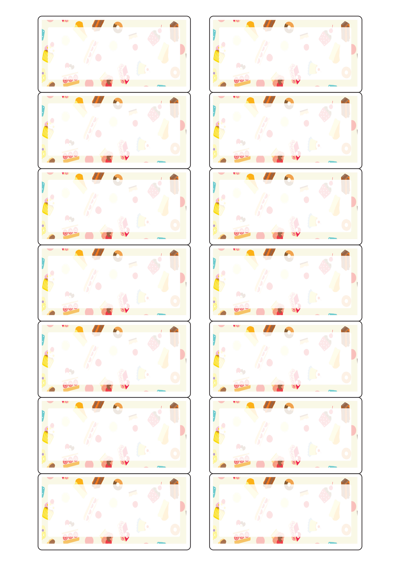디자인된 A4 라벨지 출력용 라벨스티커, 규격코드: 527, 디자인코드: DA1655(스위트, 간식패턴), 80 x 40 (mm)