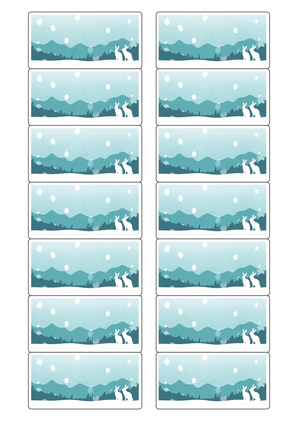 디자인된 A4 라벨지 출력용 라벨스티커, 규격코드: 527, 디자인코드: DA1716(설산 속 토끼가족), 80 x 40 (mm)