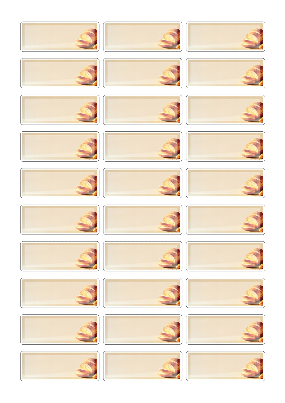 디자인된 A4 라벨지 출력용 라벨스티커, 규격코드: 530, 디자인코드: DA1450(맛있는 베이커리), 58.1 x 22 (mm)