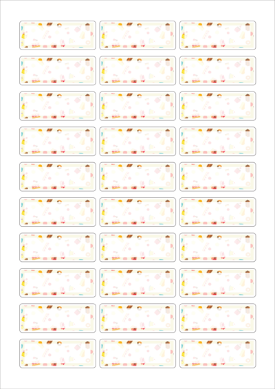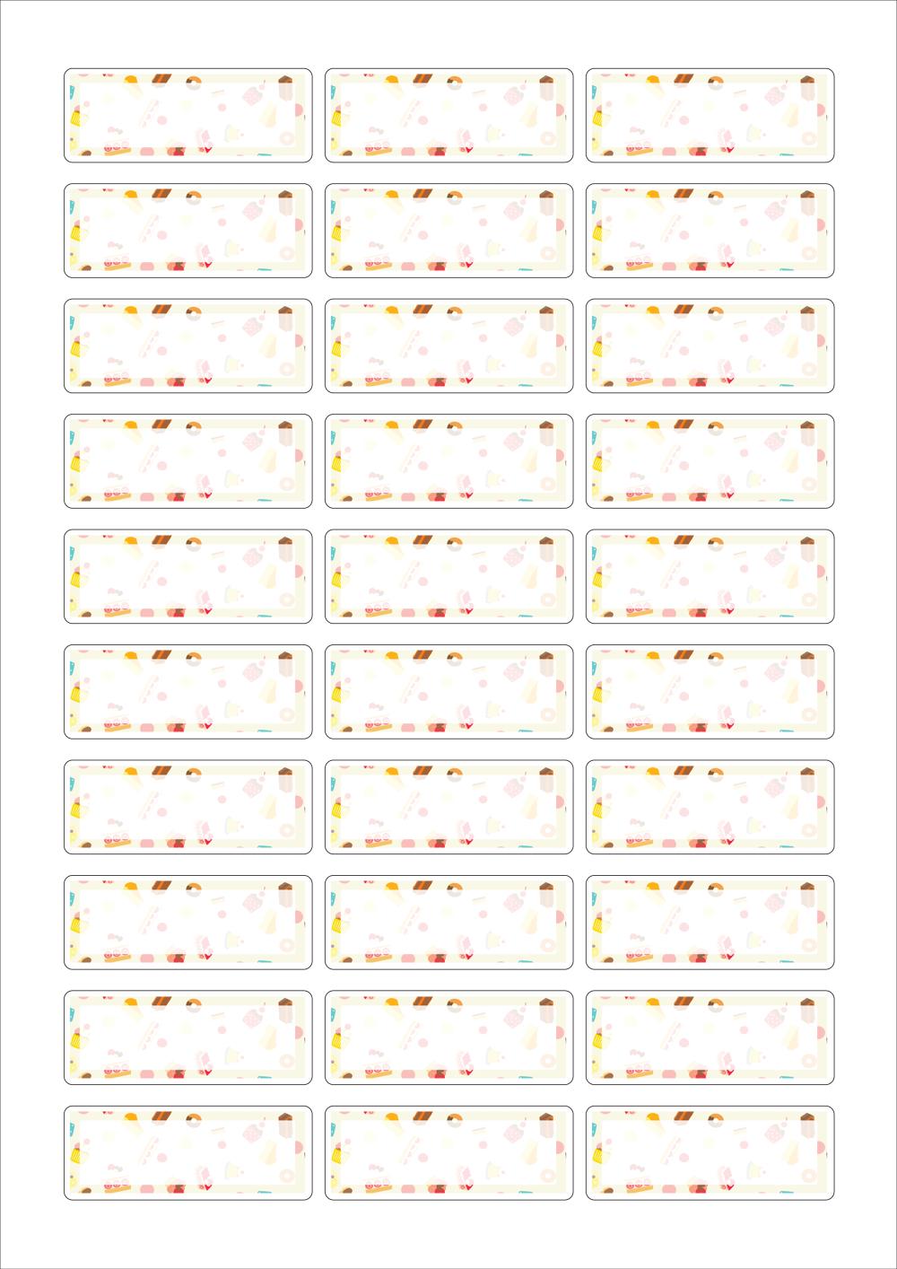 디자인된 A4 라벨지 출력용 라벨스티커, 규격코드: 530, 디자인코드: DA1655(스위트, 간식패턴), 58.1 x 22 (mm)