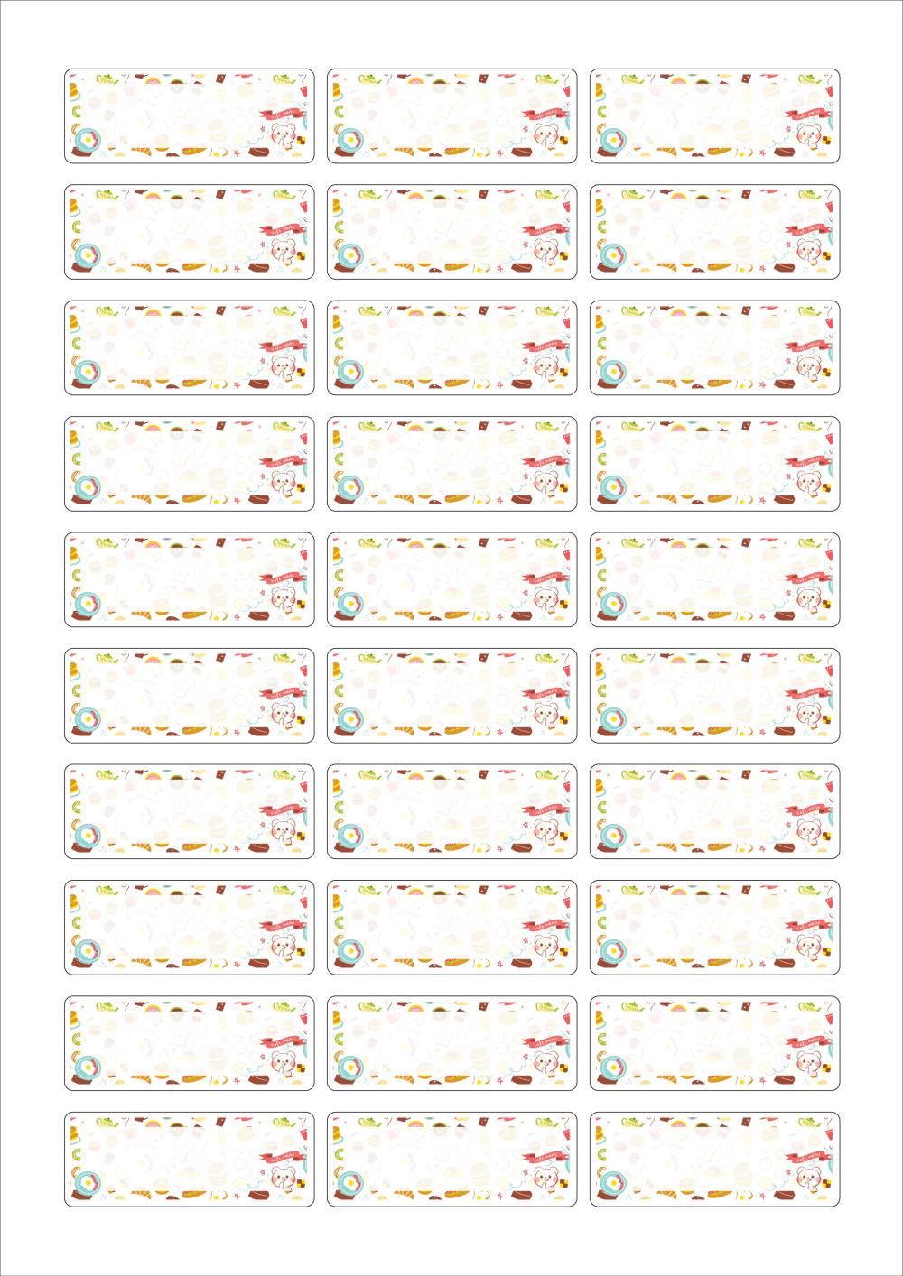 디자인된 A4 라벨지 출력용 라벨스티커, 규격코드: 530, 디자인코드: DA1734(먹고 싶은거 너무 많아요), 58.1 x 22 (mm)
