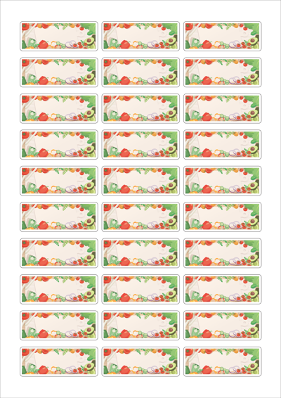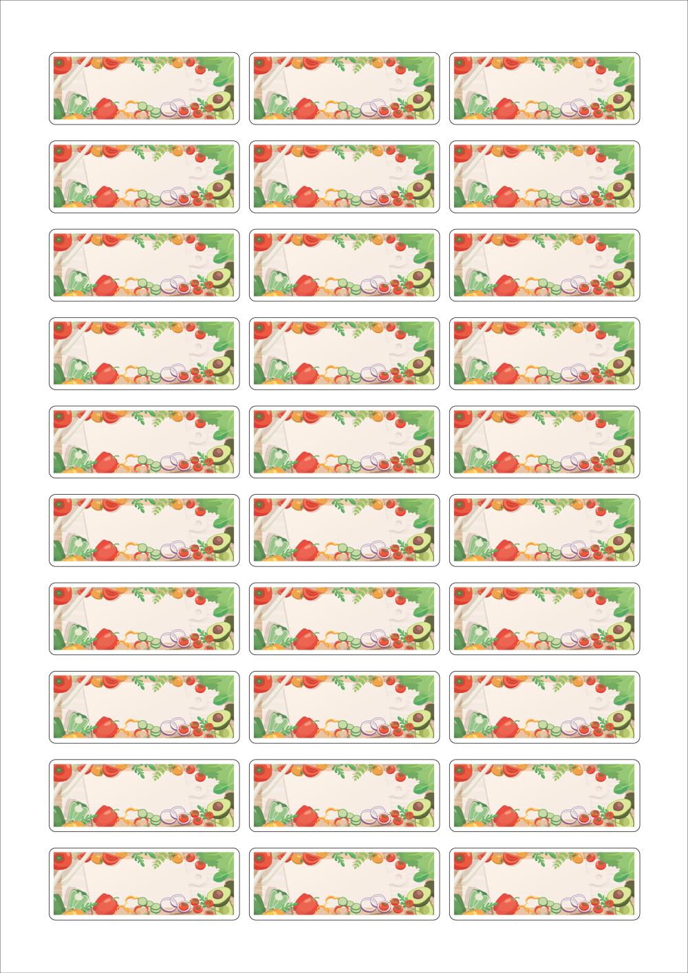 디자인된 A4 라벨지 출력용 라벨스티커, 규격코드: 530, 디자인코드: DA1760(오늘의 요리는?), 58.1 x 22 (mm)