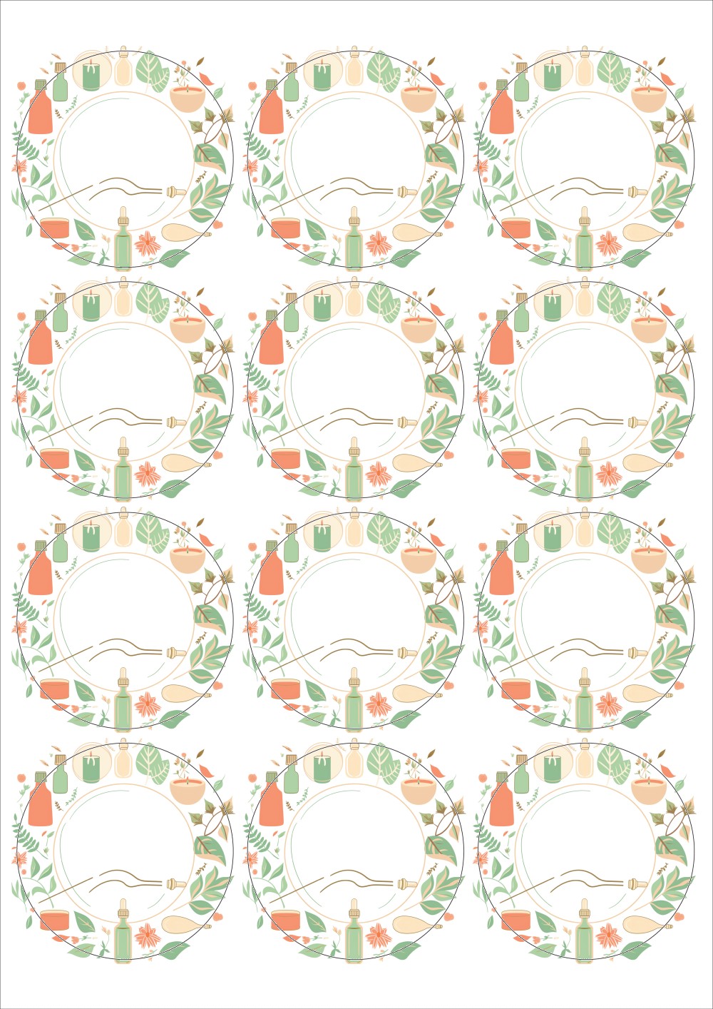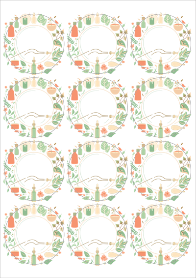 디자인된 A4 라벨지 출력용 라벨스티커, 규격코드: 534, 디자인코드: DA1407(아로마 프레임), Φ63.7 (mm) 원형