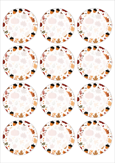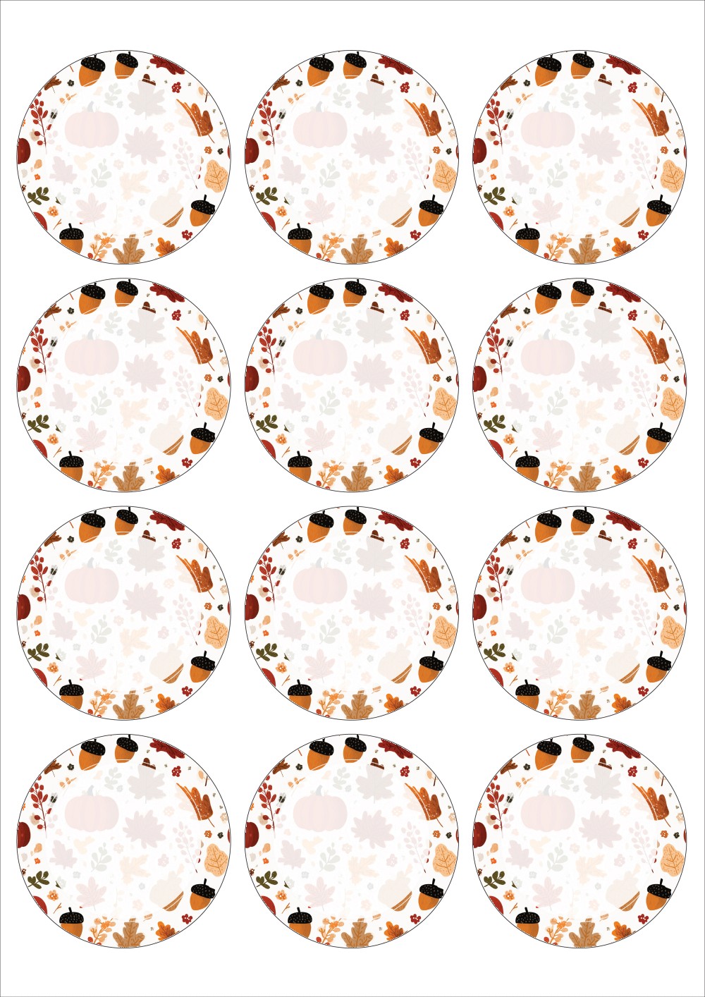 디자인된 A4 라벨지 출력용 라벨스티커, 규격코드: 534, 디자인코드: DA1443(가을 메세지 프레임 2), Φ63.7 (mm) 원형