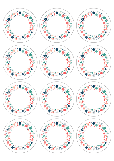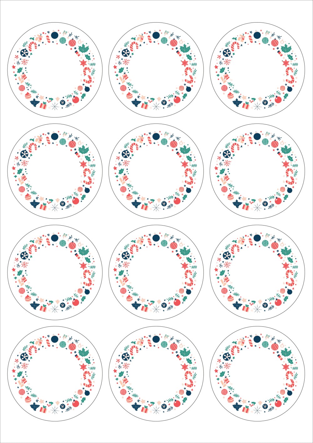 디자인된 A4 라벨지 출력용 라벨스티커, 규격코드: 534, 디자인코드: DA1457(어서오세요. 크리스마스), Φ63.7 (mm) 원형