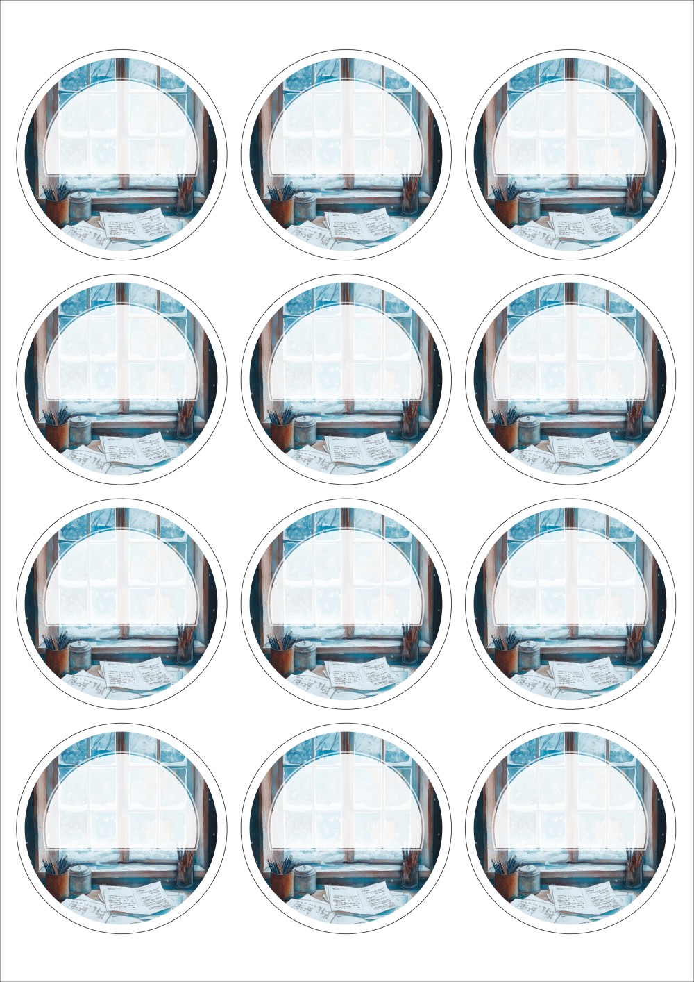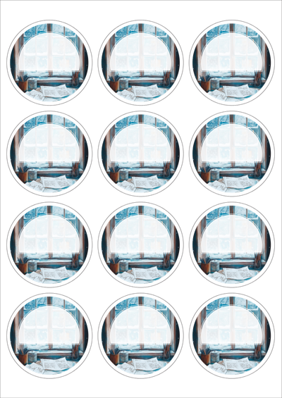 디자인된 A4 라벨지 출력용 라벨스티커, 규격코드: 534, 디자인코드: DA1499(겨울, 작가의 책상에서), Φ63.7 (mm) 원형