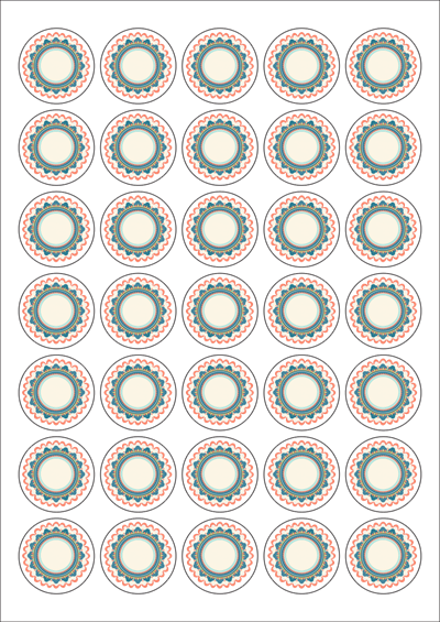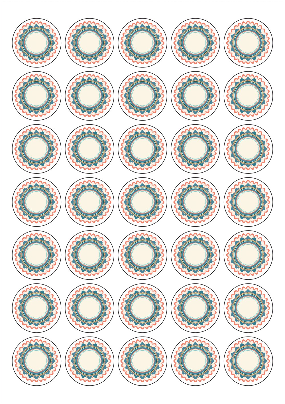 디자인된 A4 라벨지 출력용 라벨스티커, 규격코드: 535, 디자인코드: DA1418(단청 받침), Φ36 (mm) 원형