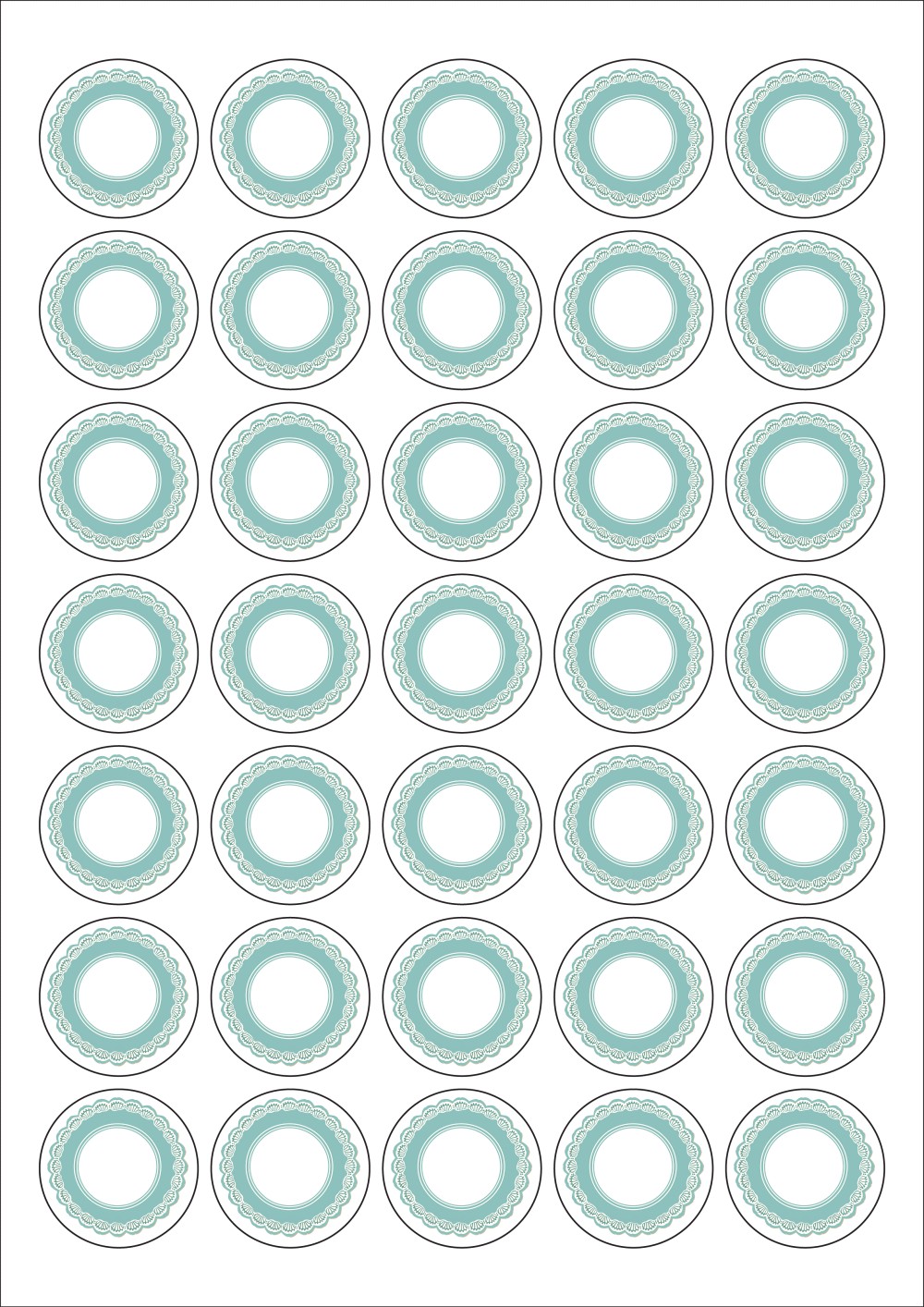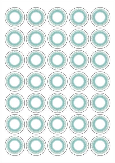 디자인된 A4 라벨지 출력용 라벨스티커, 규격코드: 535, 디자인코드: DA1419(민트레이스), Φ36 (mm) 원형