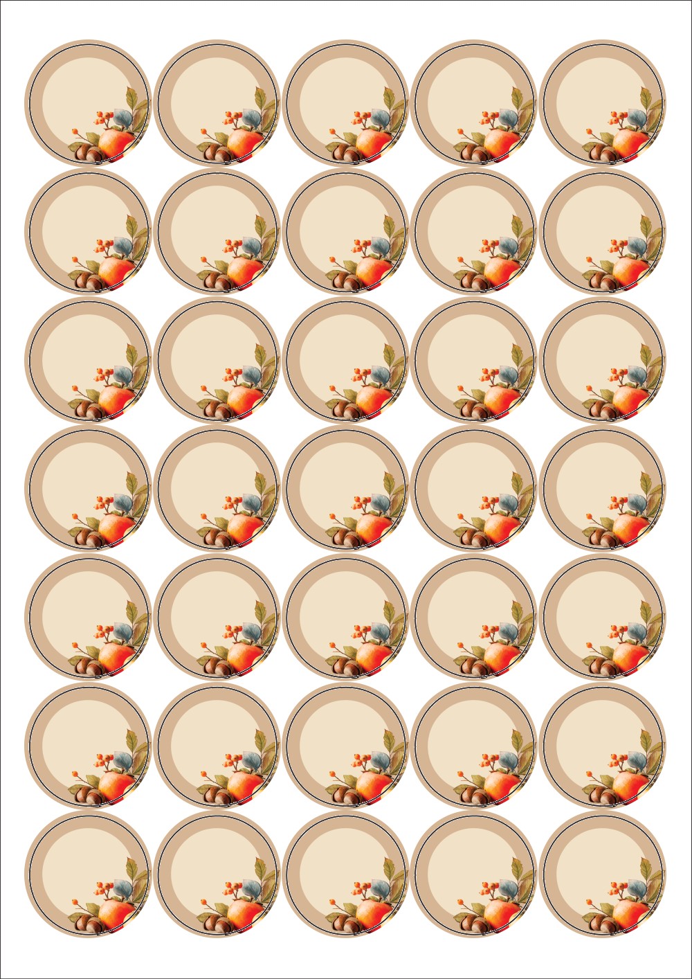 디자인된 A4 라벨지 출력용 라벨스티커, 규격코드: 535, 디자인코드: DA1452(수확의 계절, 감사의 마음을 담아서), Φ36 (mm) 원형