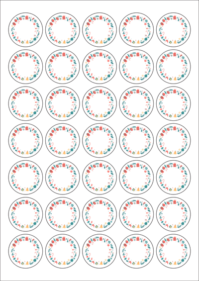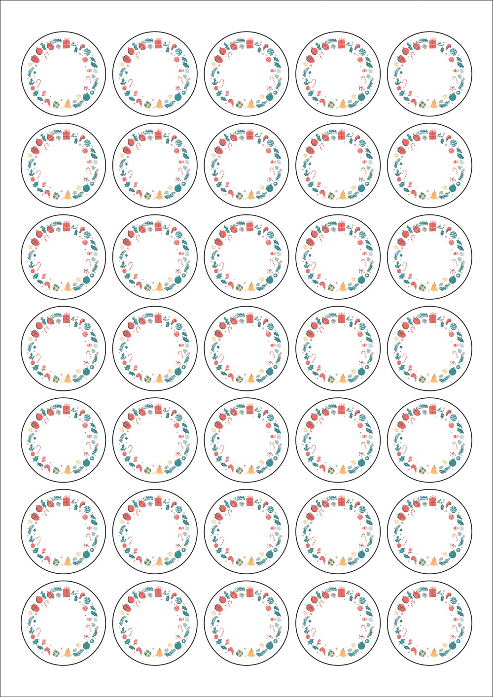 디자인된 A4 라벨지 출력용 라벨스티커, 규격코드: 535, 디자인코드: DA1456(welcome christmas!), Φ36 (mm) 원형