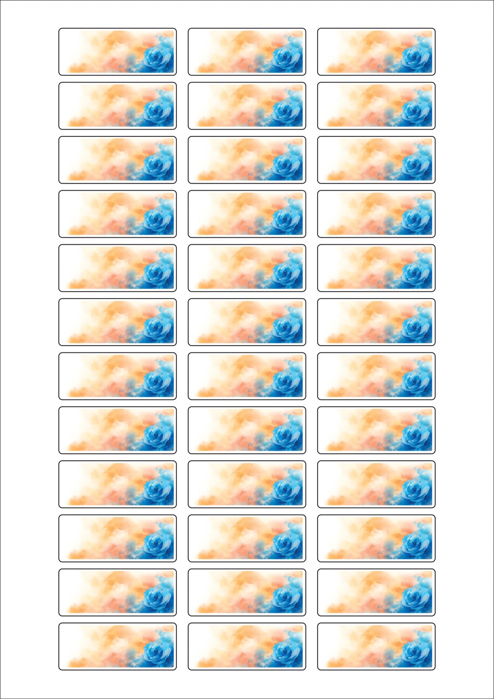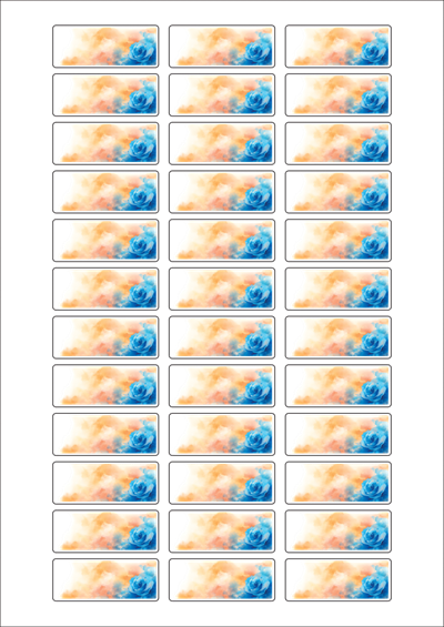 디자인된 A4 라벨지 출력용 라벨스티커, 규격코드: 536, 디자인코드: DA1410(감사의 파란 장미), 50 x 20 (mm)