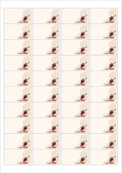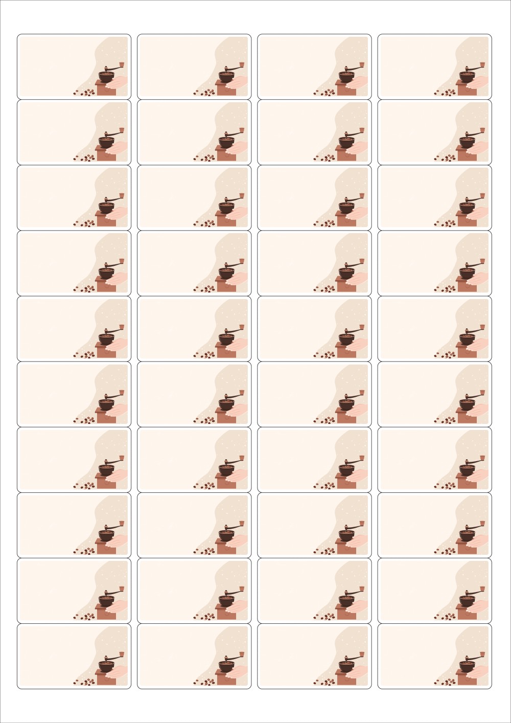 디자인된 A4 라벨지 출력용 라벨스티커, 규격코드: 540, 디자인코드: DA1412(감사의 커피한잔), 46.9 x 26.902 (mm)
