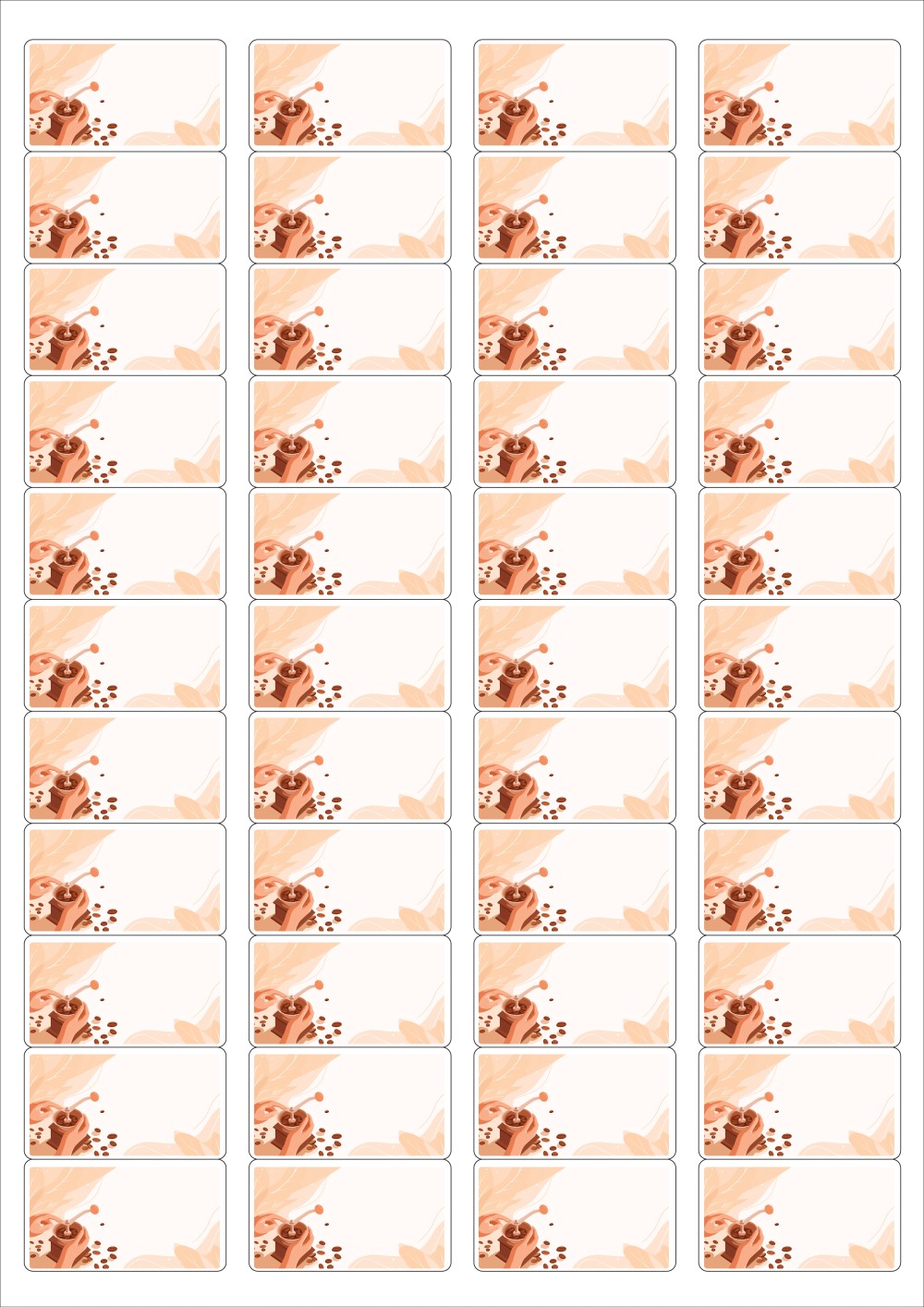 디자인된 A4 라벨지 출력용 라벨스티커, 규격코드: 544, 디자인코드: DA1411(향긋한 커피타임), 45.9 x 25.5 (mm)