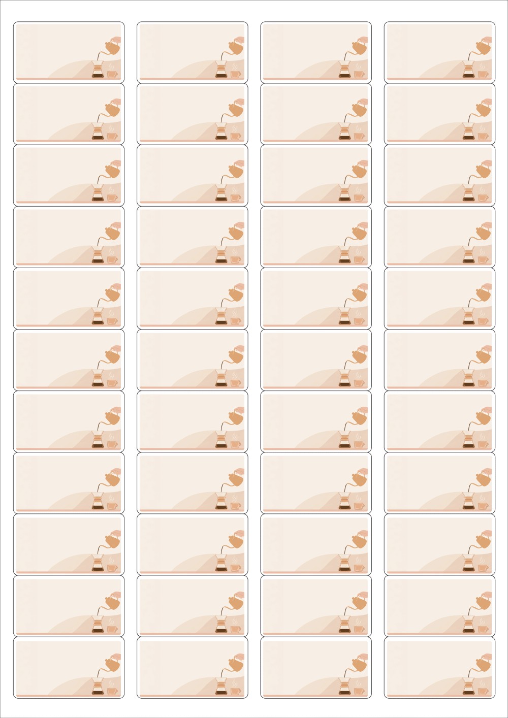 디자인된 A4 라벨지 출력용 라벨스티커, 규격코드: 544, 디자인코드: DA1413(커피와 함께 힐링타임), 45.9 x 25.5 (mm)