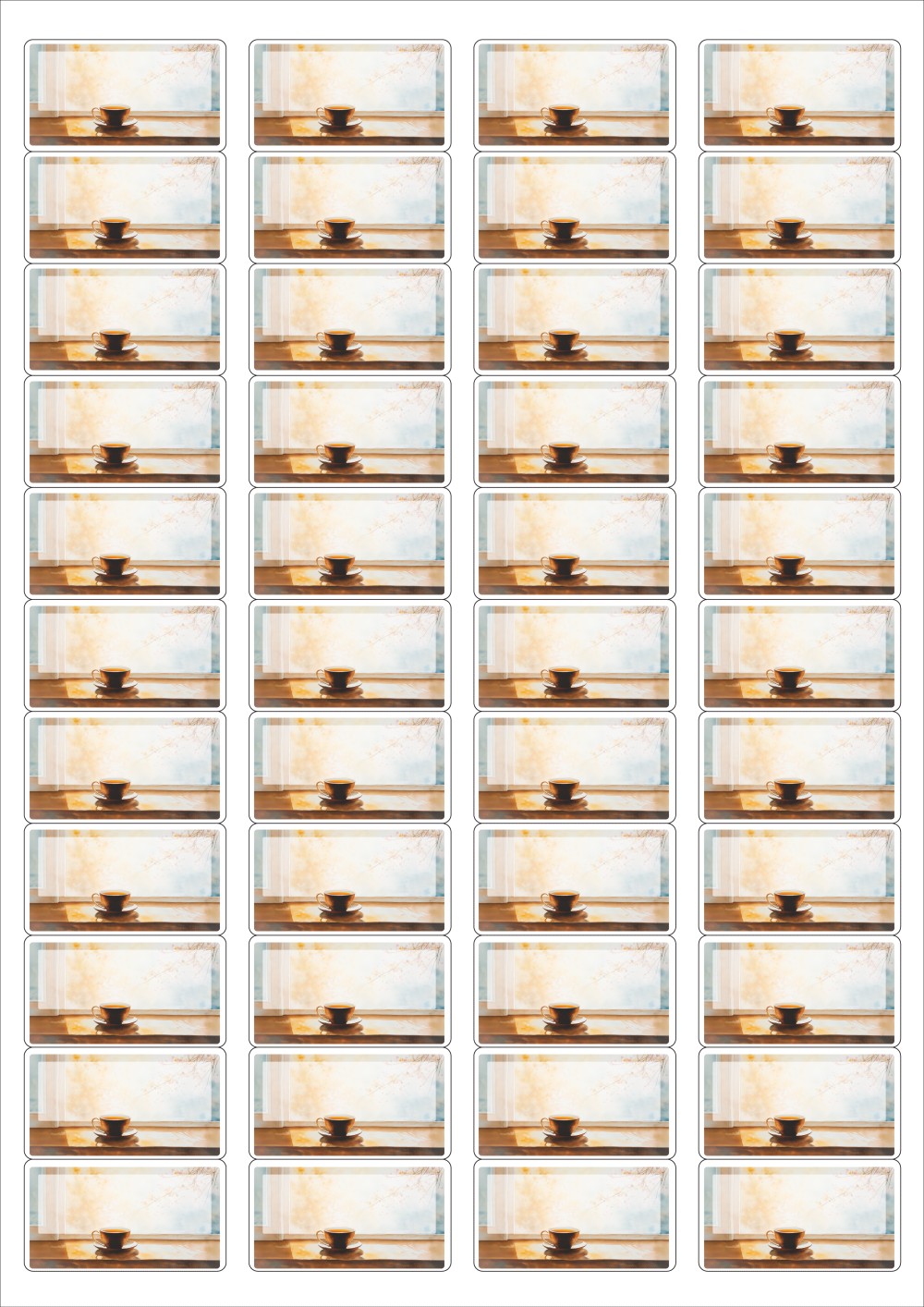디자인된 A4 라벨지 출력용 라벨스티커, 규격코드: 544, 디자인코드: DA1425(가을날의 카페 창가에서), 45.9 x 25.5 (mm)