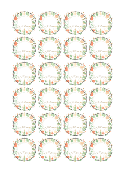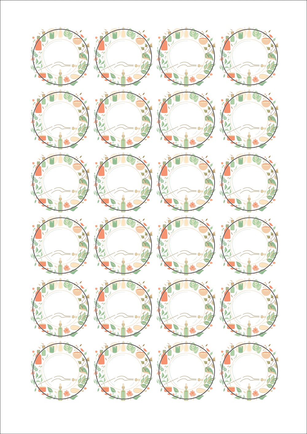 디자인된 A4 라벨지 출력용 라벨스티커, 규격코드: 546, 디자인코드: DA1407(아로마 프레임), Φ38.1 (mm) 원형
