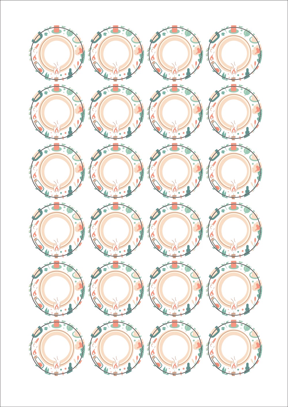 디자인된 A4 라벨지 출력용 라벨스티커, 규격코드: 546, 디자인코드: DA1408(힐링 메세지), Φ38.1 (mm) 원형