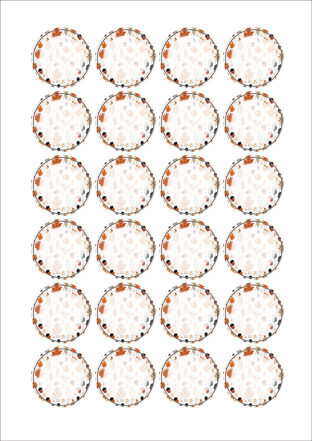 디자인된 A4 라벨지 출력용 라벨스티커, 규격코드: 546, 디자인코드: DA1442(가을 메세지 프레임 1), Φ38.1 (mm) 원형