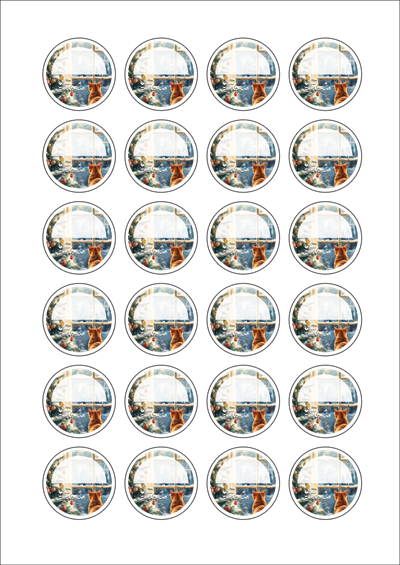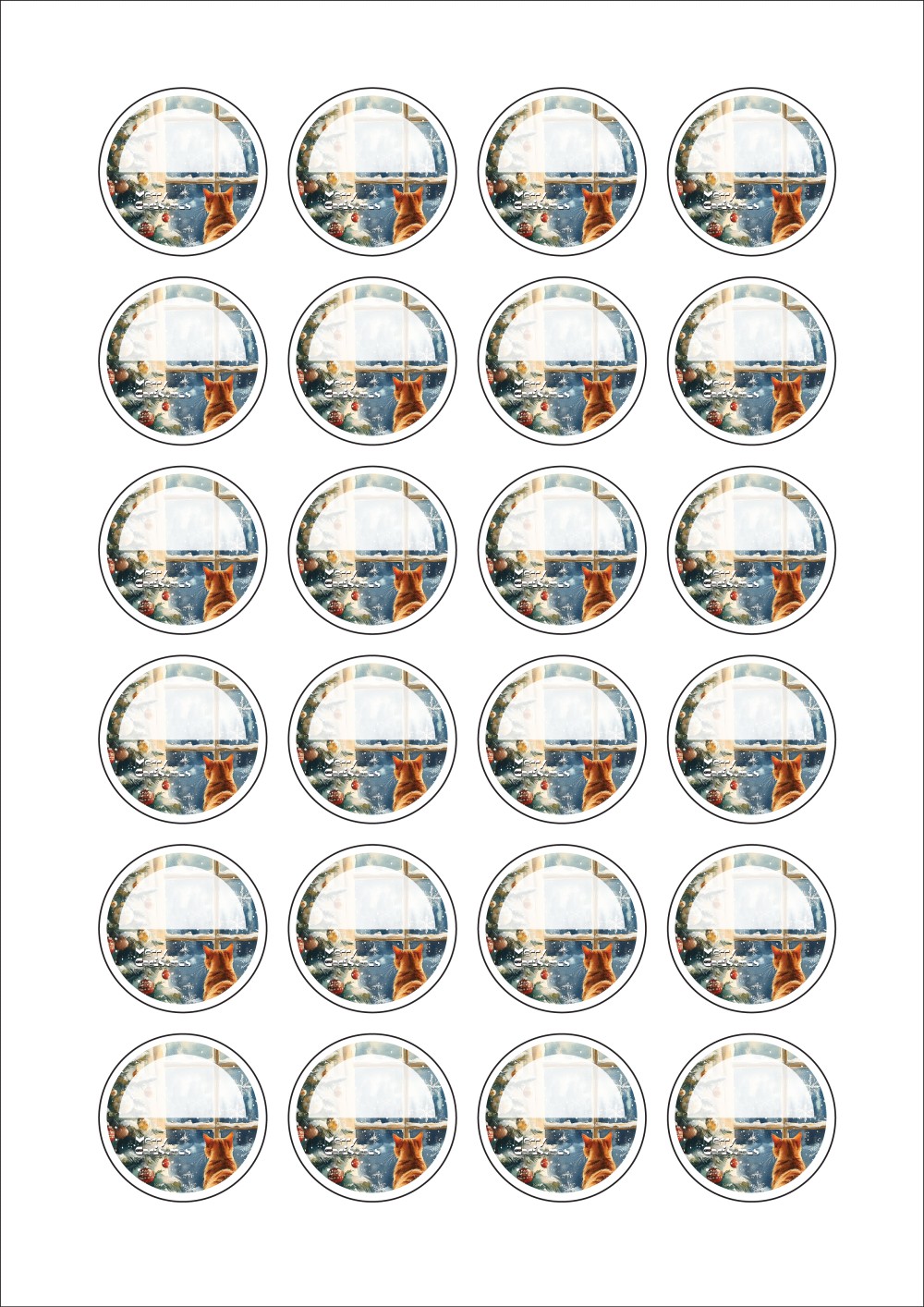 디자인된 A4 라벨지 출력용 라벨스티커, 규격코드: 546, 디자인코드: DA1496(메리크리스마스냥!), Φ38.1 (mm) 원형