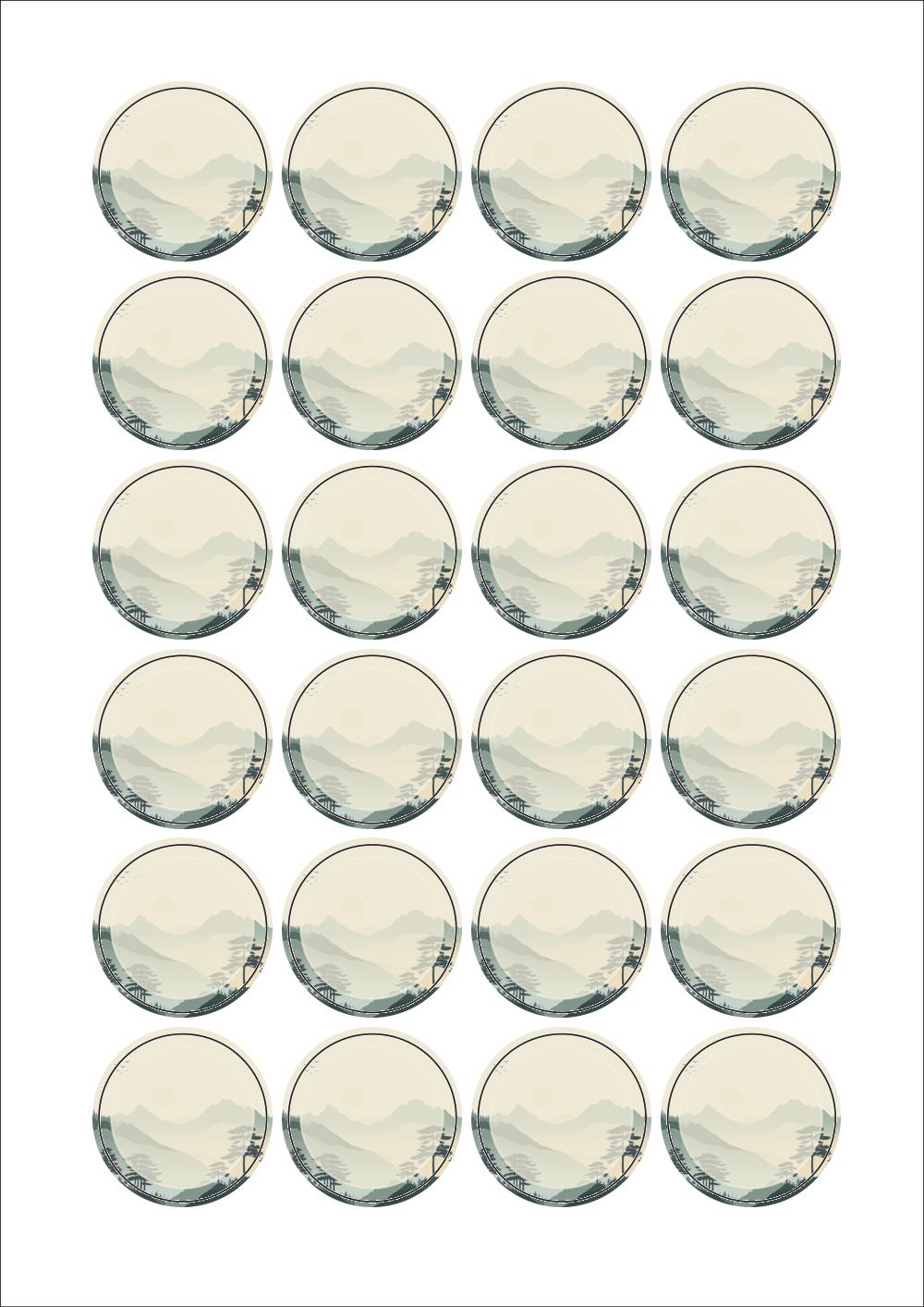 디자인된 A4 라벨지 출력용 라벨스티커, 규격코드: 546, 디자인코드: DA1573(새해 인사 스티커), Φ38.1 (mm) 원형
