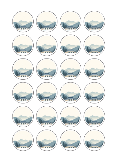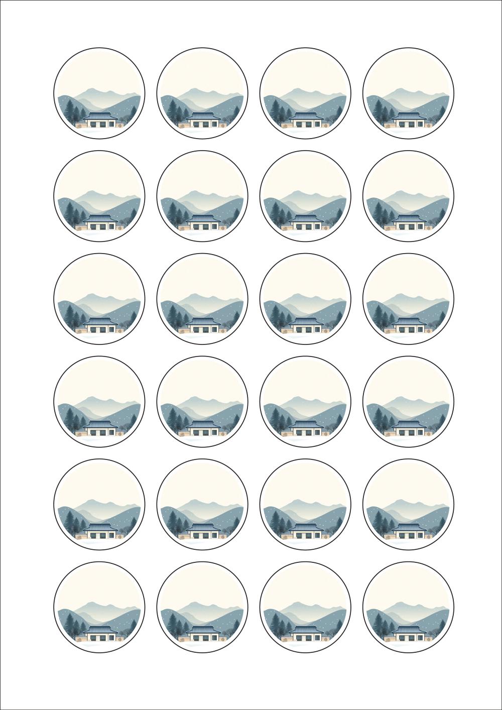 디자인된 A4 라벨지 출력용 라벨스티커, 규격코드: 546, 디자인코드: DA1581(설날의 감사의 인사), Φ38.1 (mm) 원형
