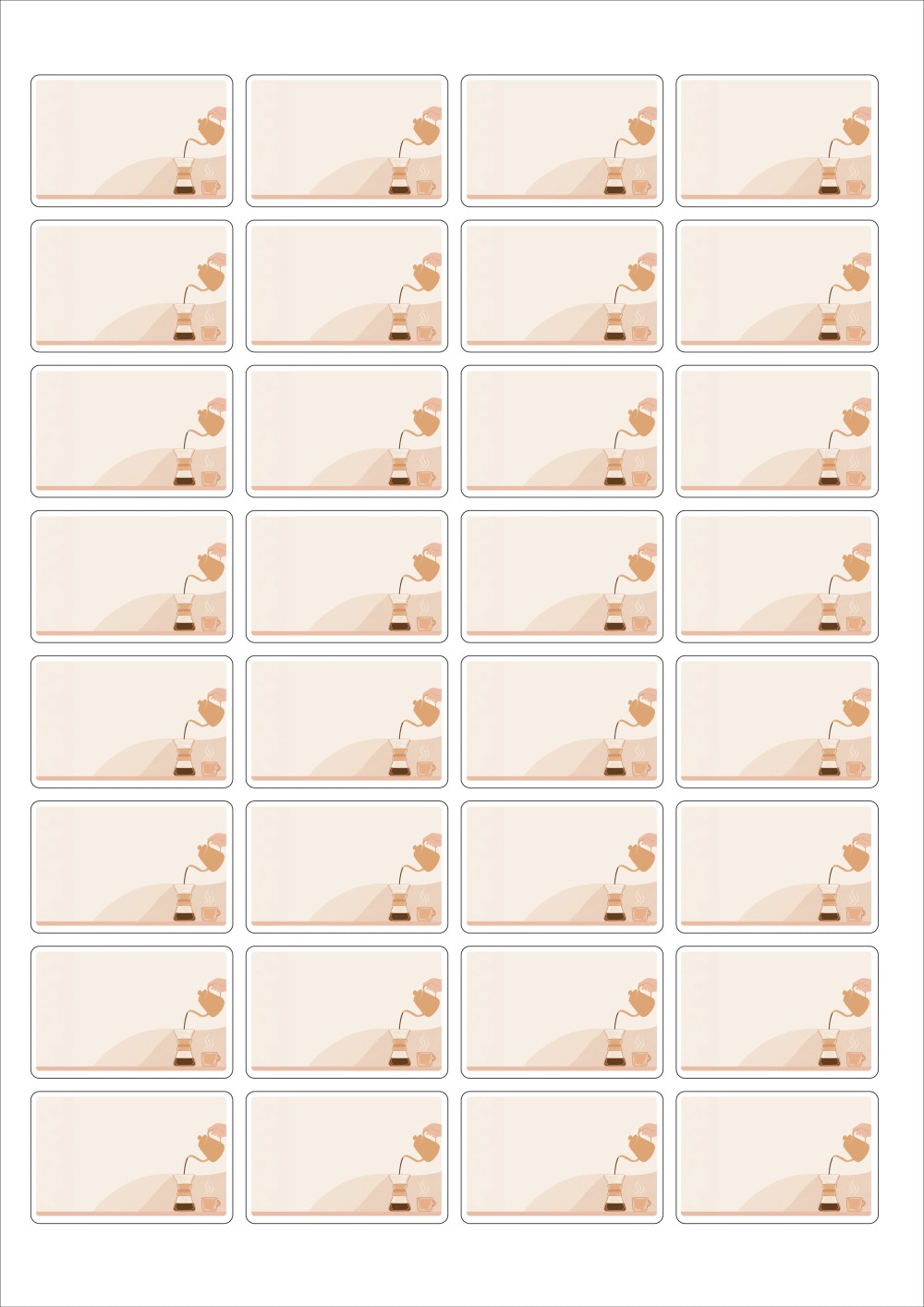 디자인된 A4 라벨지 출력용 라벨스티커, 규격코드: 548, 디자인코드: DA1413(커피와 함께 힐링타임), 45.9 x 30 (mm)