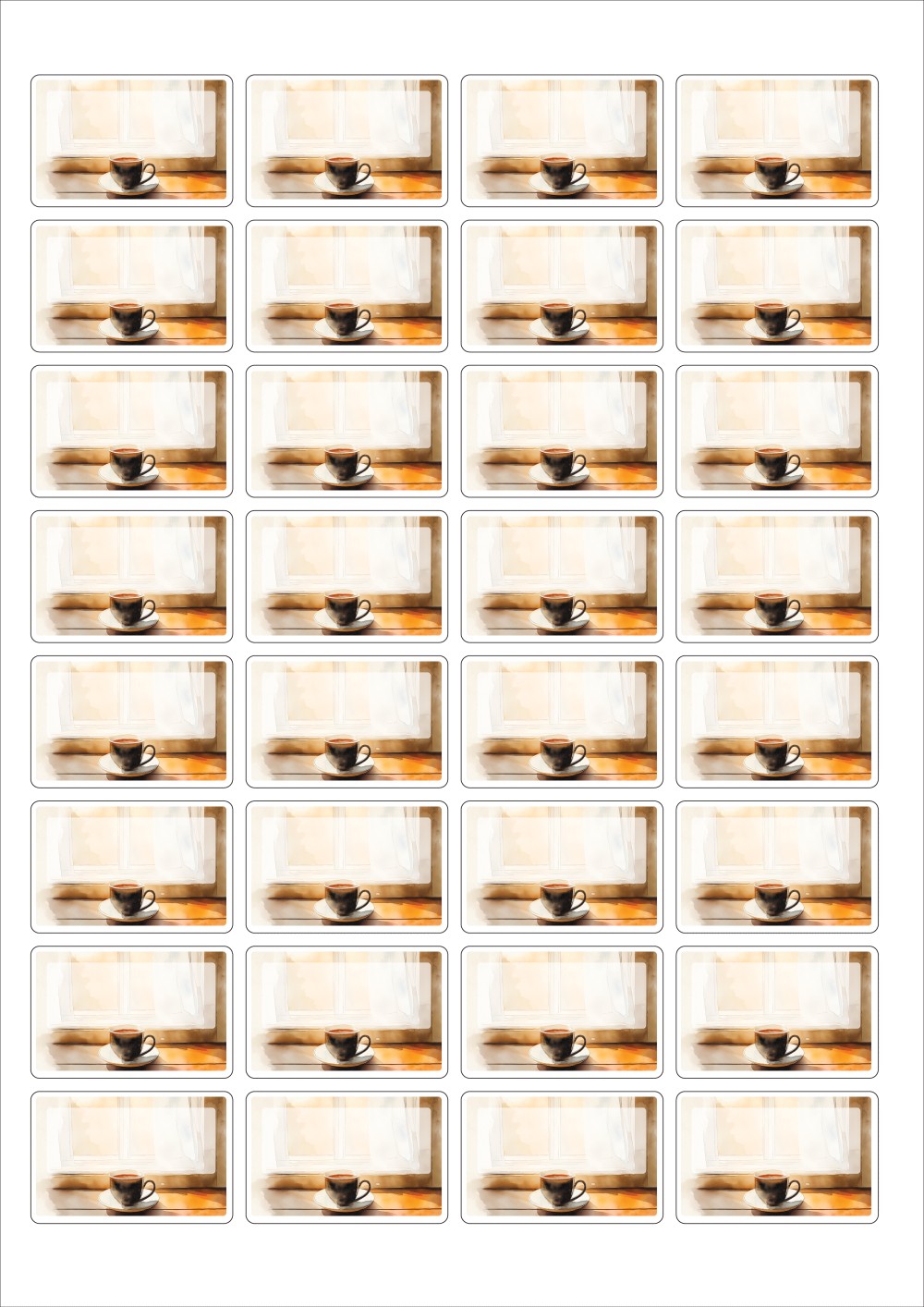 디자인된 A4 라벨지 출력용 라벨스티커, 규격코드: 548, 디자인코드: DA1424(따뜻한 차 한잔 하세요), 45.9 x 30 (mm)