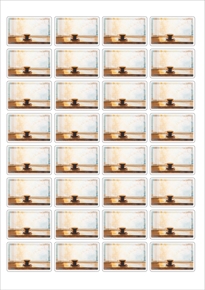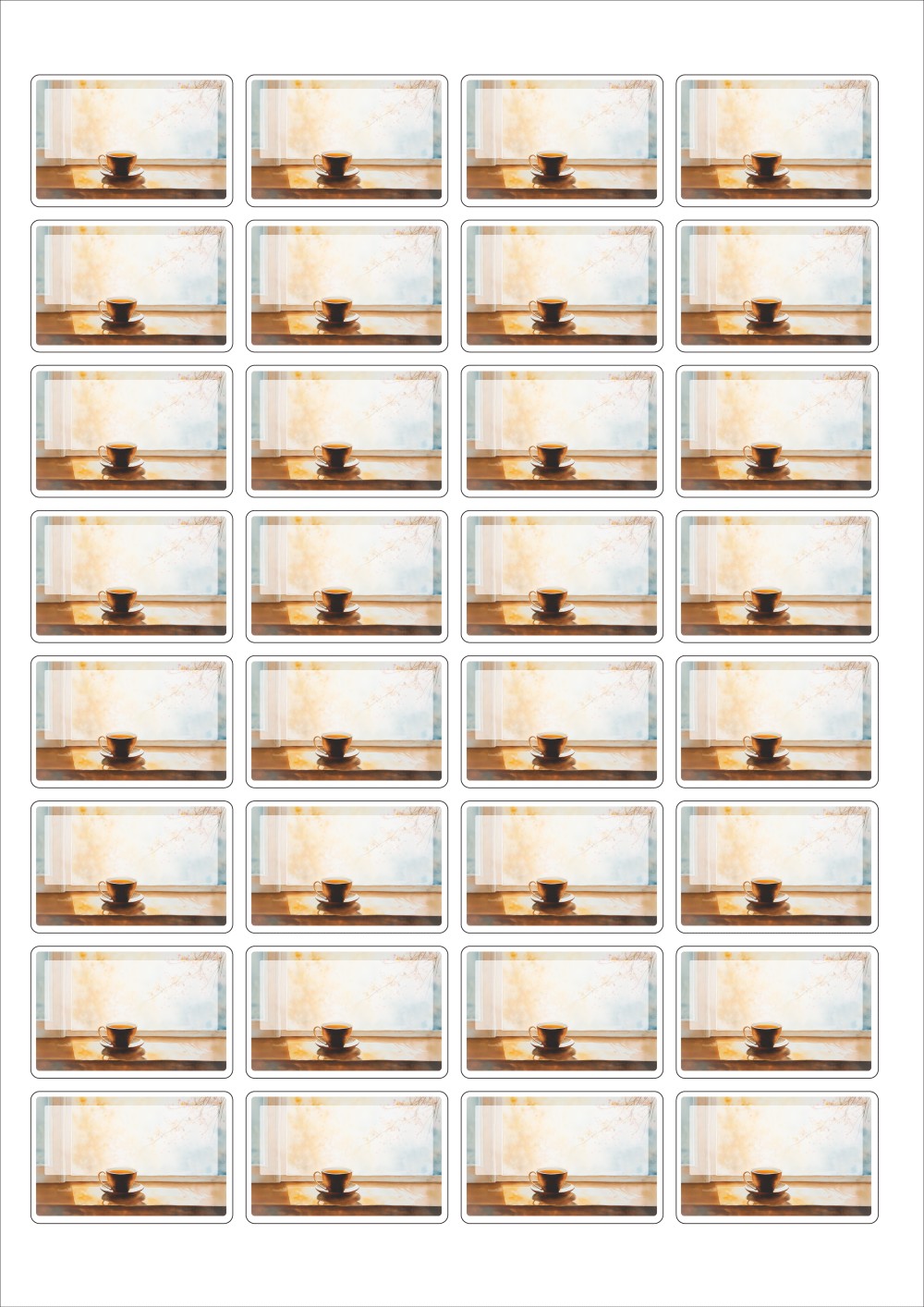디자인된 A4 라벨지 출력용 라벨스티커, 규격코드: 548, 디자인코드: DA1425(가을날의 카페 창가에서), 45.9 x 30 (mm)