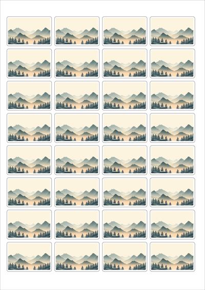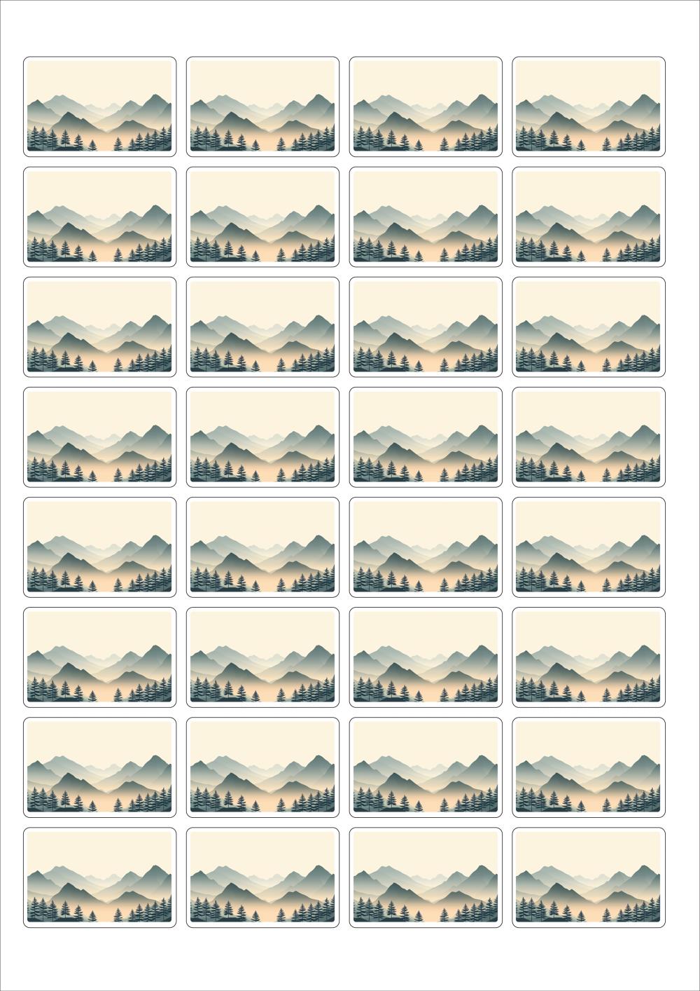 디자인된 A4 라벨지 출력용 라벨스티커, 규격코드: 548, 디자인코드: DA1572(고요한 아침의 숲), 45.9 x 30 (mm)