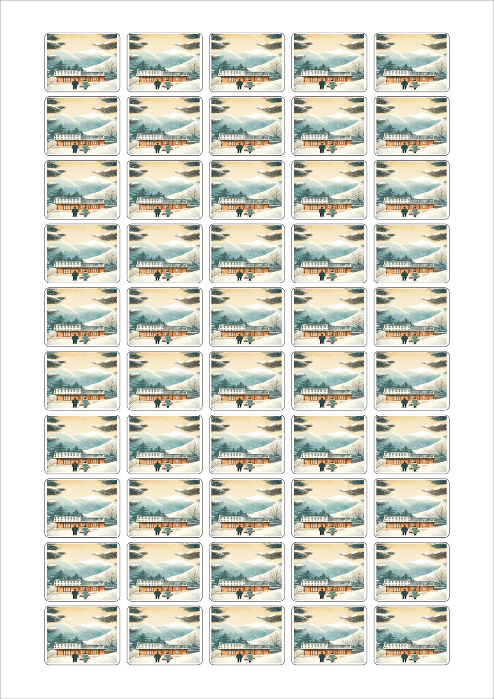 디자인된 A4 라벨지 출력용 라벨스티커, 규격코드: 550, 디자인코드: DA1575(설, 따뜻한 귀향), 32 x 25.05 (mm)