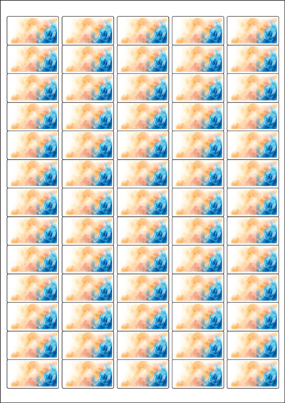 디자인된 A4 라벨지 출력용 라벨스티커, 규격코드: 551, 디자인코드: DA1410(감사의 파란 장미), 38.1 x 21.07 (mm)