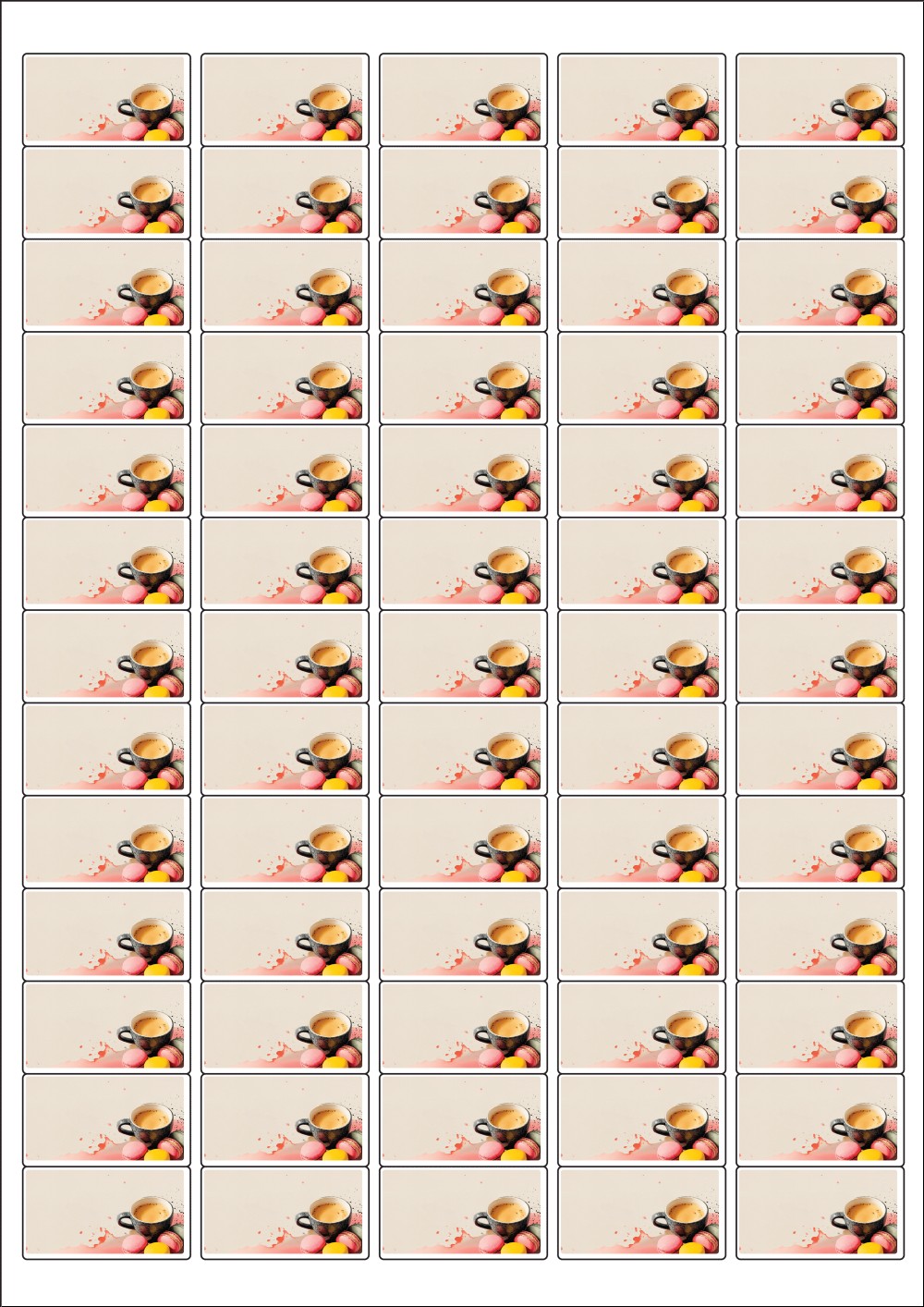 디자인된 A4 라벨지 출력용 라벨스티커, 규격코드: 551, 디자인코드: DA1445(차와 함께하는 즐거운 힐링타임), 38.1 x 21.07 (mm)