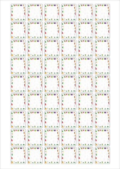 디자인된 A4 라벨지 출력용 라벨스티커, 규격코드: 554, 디자인코드: DA1376(건강한 야채 이야기), 26 x 29.53 (mm)