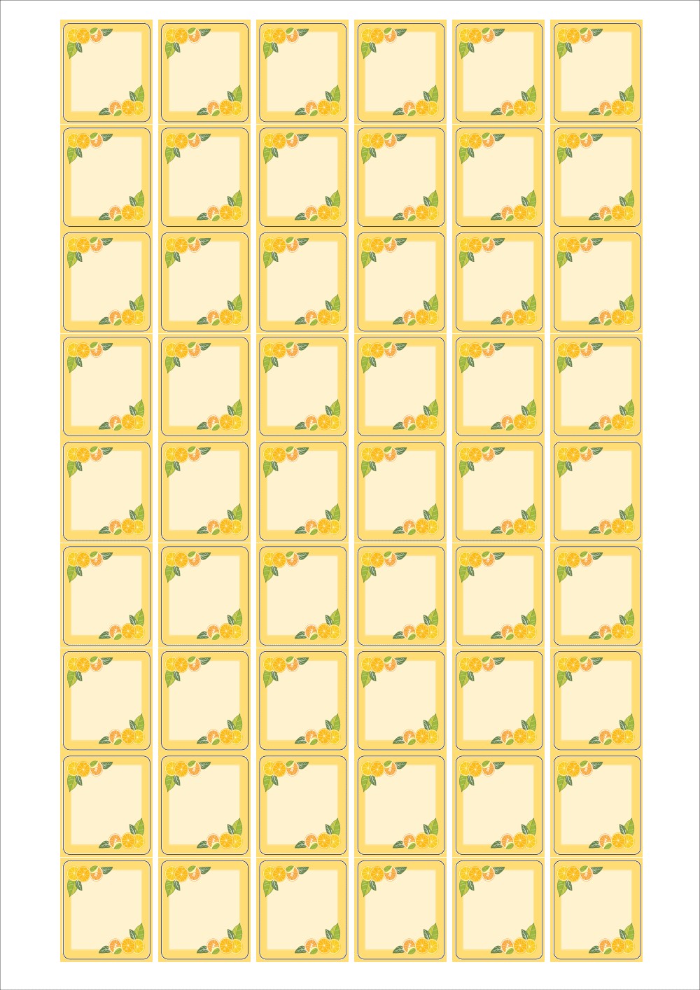 디자인된 A4 라벨지 출력용 라벨스티커, 규격코드: 554, 디자인코드: DA1417(상큼한 레몬 메세지), 26 x 29.53 (mm)