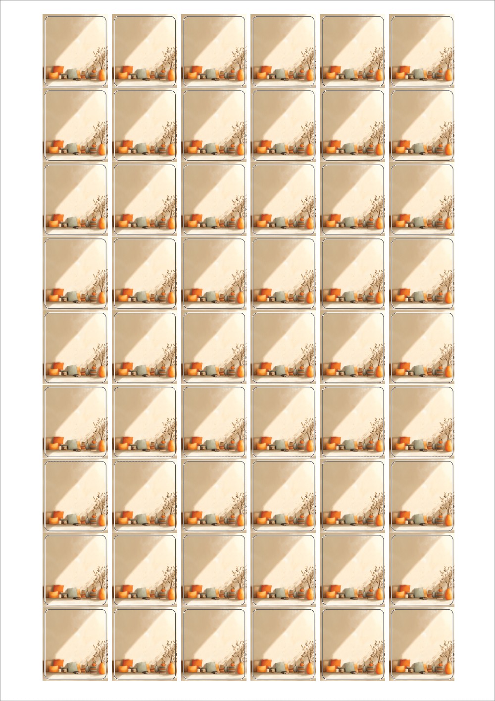 디자인된 A4 라벨지 출력용 라벨스티커, 규격코드: 554, 디자인코드: DA1435(평온한 가을날의 하루), 26 x 29.53 (mm)