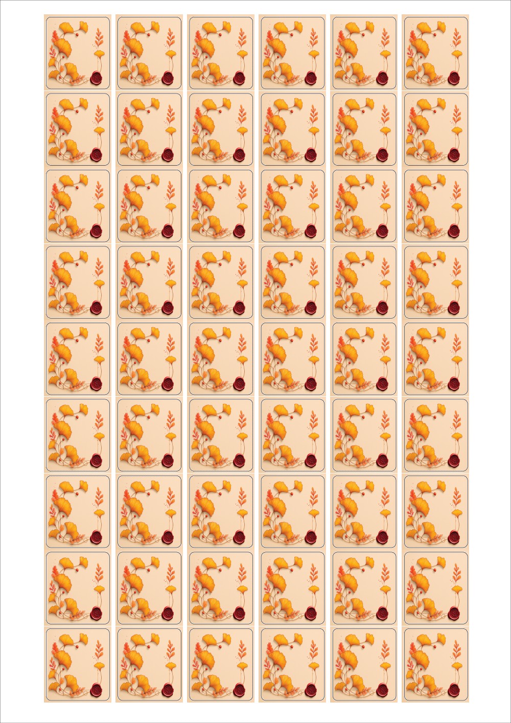 디자인된 A4 라벨지 출력용 라벨스티커, 규격코드: 554, 디자인코드: DA1437(은행잎 메모), 26 x 29.53 (mm)