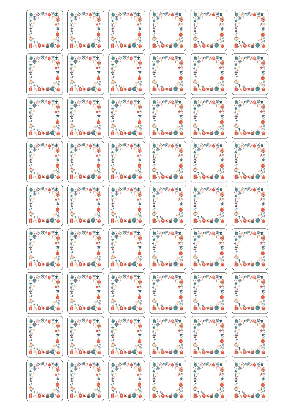 디자인된 A4 라벨지 출력용 라벨스티커, 규격코드: 554, 디자인코드: DA1459(크라스마스 메세지), 26 x 29.53 (mm)