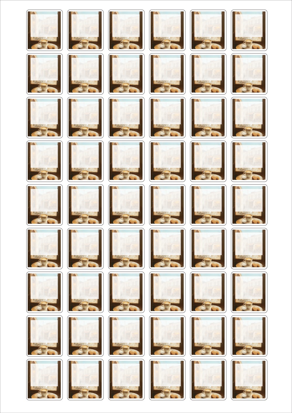 디자인된 A4 라벨지 출력용 라벨스티커, 규격코드: 554, 디자인코드: DA1479(레트로 감성 카페에서), 26 x 29.53 (mm)