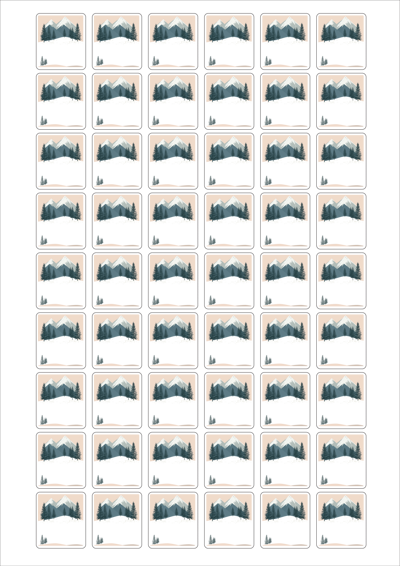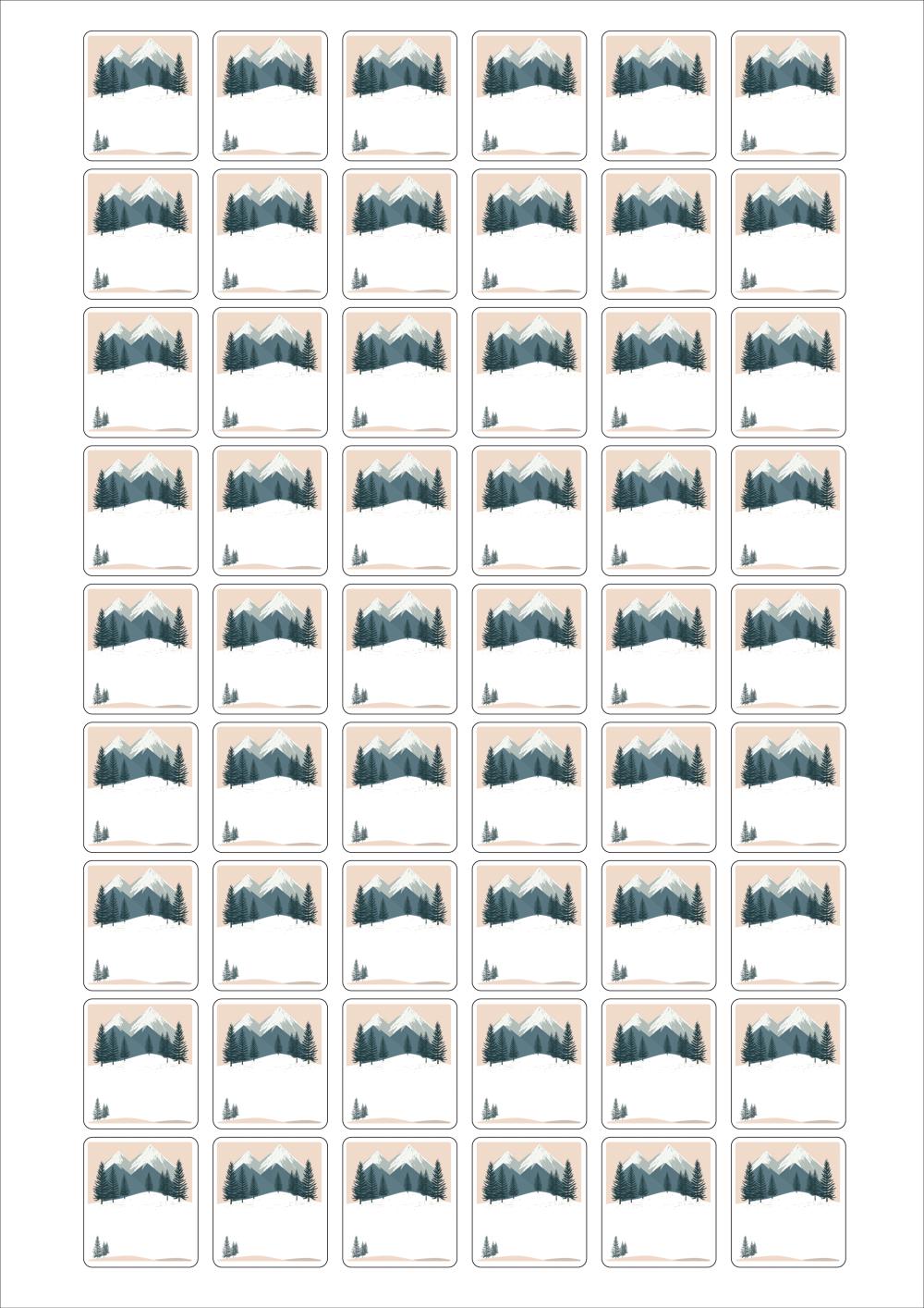 디자인된 A4 라벨지 출력용 라벨스티커, 규격코드: 554, 디자인코드: DA1582(저 잘지내요~ 겨울산에 인사), 26 x 29.53 (mm)