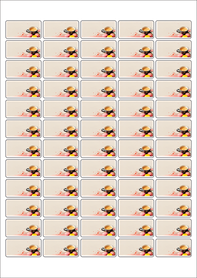 디자인된 A4 라벨지 출력용 라벨스티커, 규격코드: 562, 디자인코드: DA1445(차와 함께하는 즐거운 힐링타임), 38.1 x 19.1 (mm)