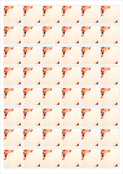 디자인된 A4 라벨지 출력용 라벨스티커, 규격코드: 568, 디자인코드: DA1428(가을날의 메세지1), 33 x 33 (mm)