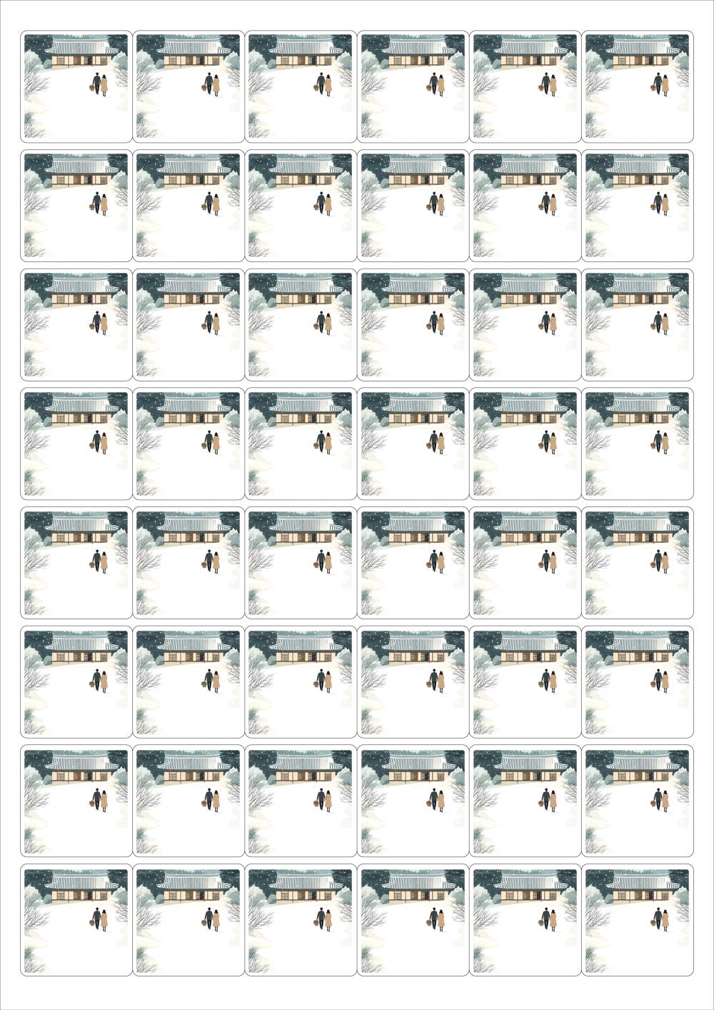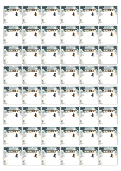 디자인된 A4 라벨지 출력용 라벨스티커, 규격코드: 568, 디자인코드: DA1580(눈내린 귀향의 따뜻한 길), 33 x 33 (mm)